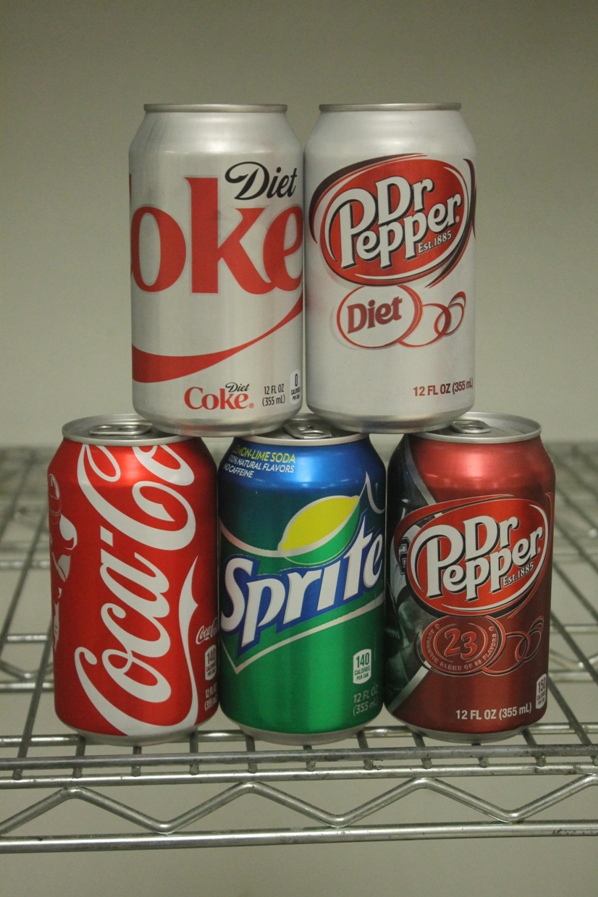 Variety of soda; Coke, Sprite, Orange Sunkist, Dr.Pepper. Water.