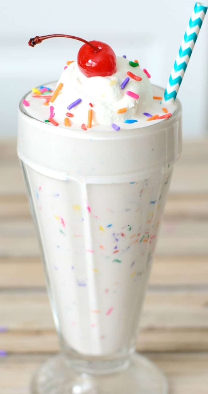 Vanilla ice cream, whipped cream, sprinkles, cherry.