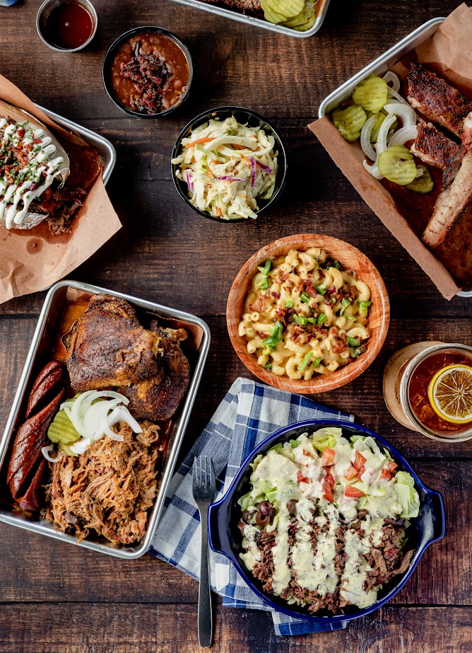 The Pit 75(minimum 75 people) - 1 Meat with 2 Sides (choose from 3 meats and 3 sides) - Loaded Baked Potato with 1 meat (comes with butter, cheese, BBQ sauc